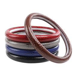 Nuevo juego de fundas para volante de coche con patrón tridimensional General de cuatro estaciones, imitación de cuero con diseño de cocodrilo